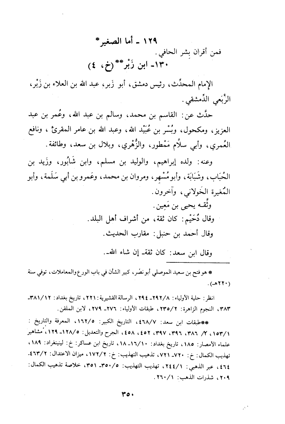 130 - ابْنُ زَبْرٍ عَبْدُ اللهِ بنُ العَلاَءِ الرَّبَعِيُّ ** (خَ، 4)