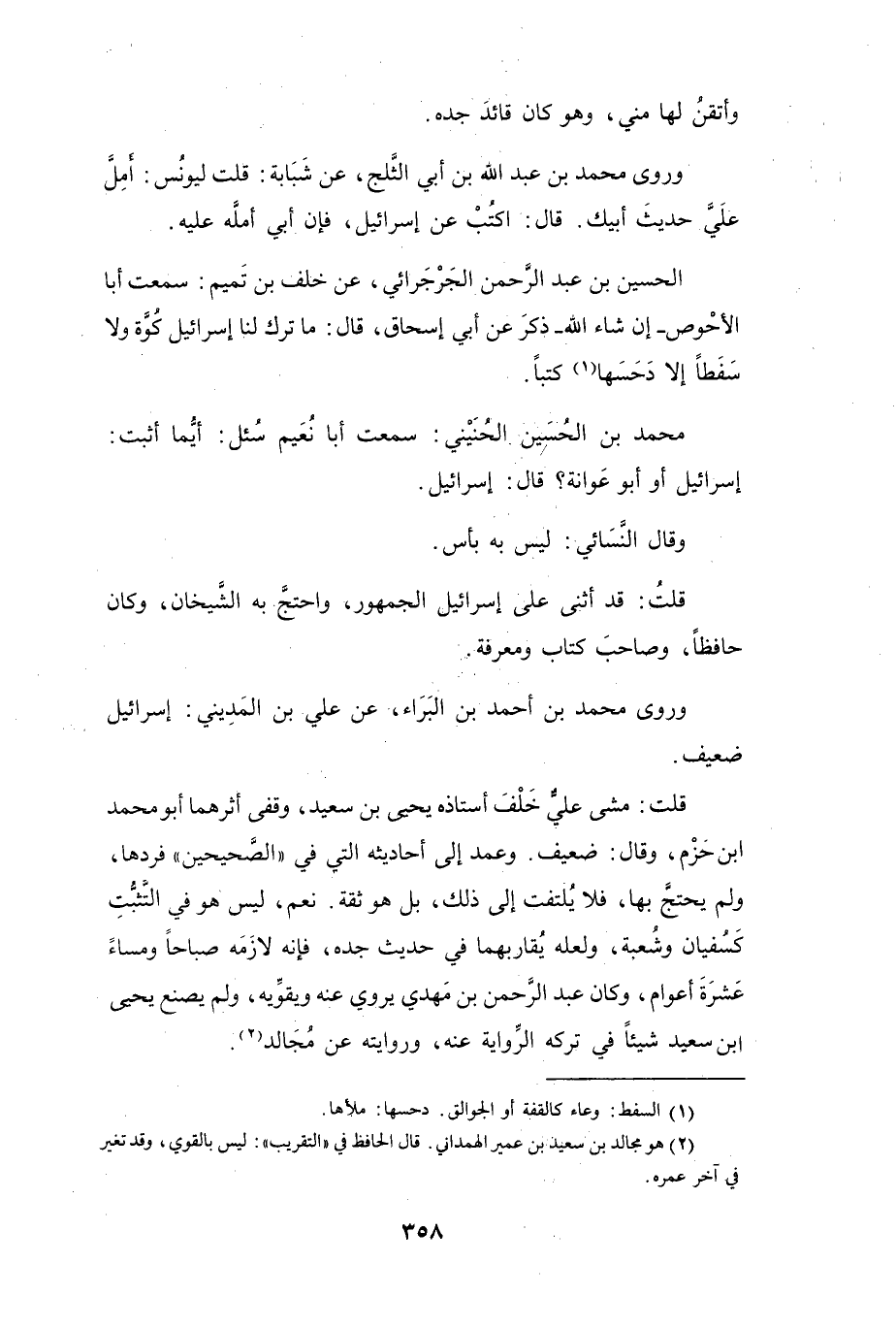 قُلْتُ: قَدْ أَثْنَى عَلَى إِسْرَائِيْلَ الجُمْهُوْرُ، وَاحْتجَّ بِهِ الشَّيْخَانِ، وَكَانَ حَافِظاً، وَصَاحِبَ كِتَابٍ وَمَعْرِفَةٍ.
