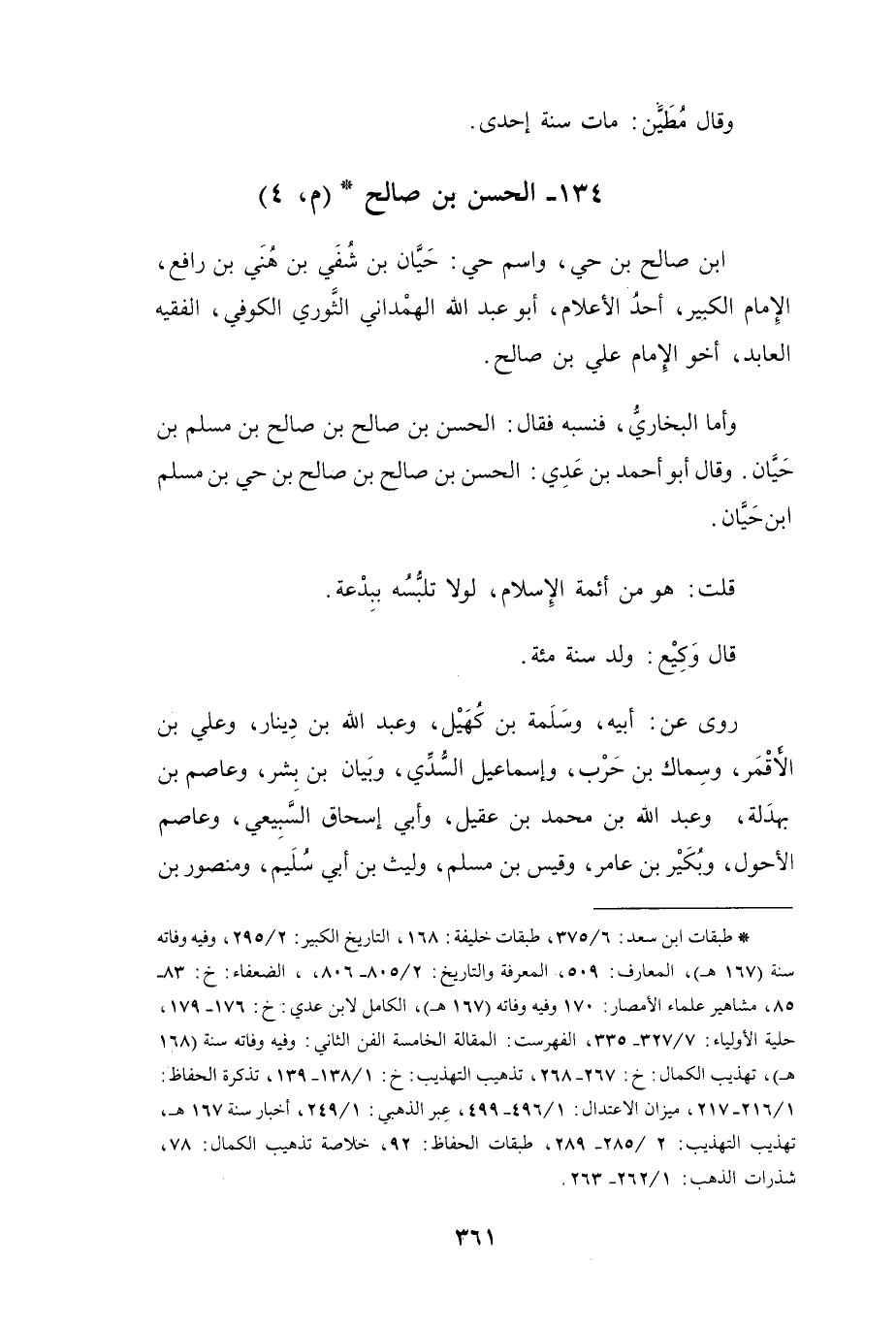 134 - الحَسَنُ بنُ صَالِحِ بنِ صَالِحِ بنِ حَيٍّ الهَمْدَانِيُّ * (م، 4)