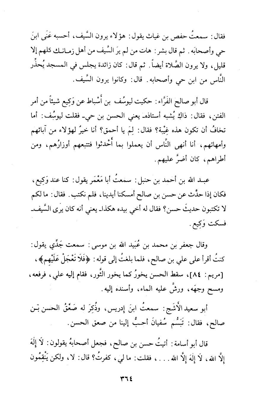 قَالَ أَبُو أُسَامَةَ: أَتَيْتُ حَسَنَ بنَ صَالِحٍ، فَجَعَلَ أَصْحَابُهُ يَقُوْلُوْنَ: لاَ إِلَهَ إِلاَّ اللهُ، لاَ إِلَهَ إِلاَّ اللهُ ...