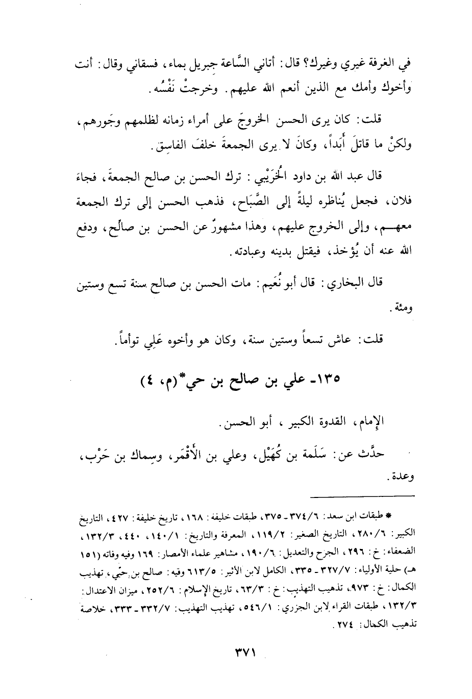 135 - عَلِيُّ بنُ صَالِحِ بنِ حَيٍّ أَبُو الحَسَنِ الهَمْدَانِيُّ * (م، 4)