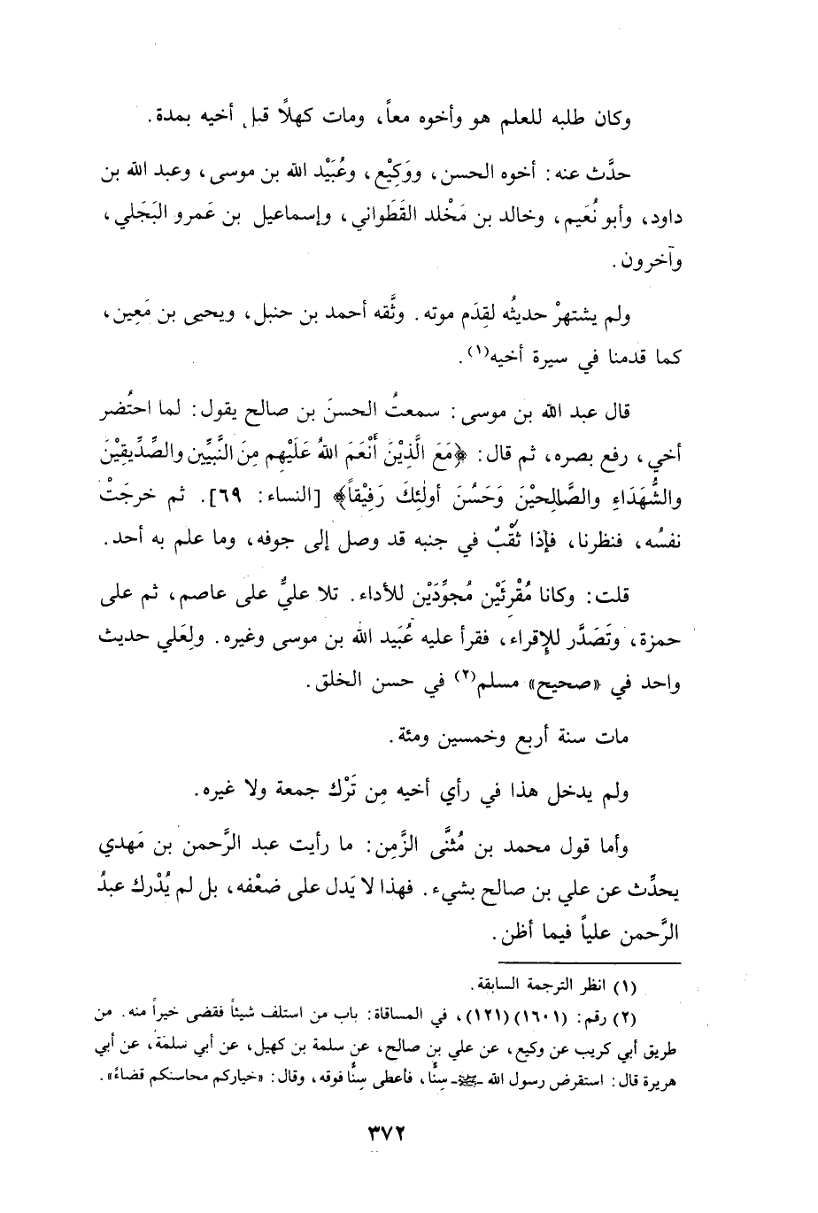 قَالَ عَبْدُ اللهِ بنُ مُوْسَى: سَمِعْتُ الحَسَنَ بنَ صَالِحٍ يَقُوْلُ: