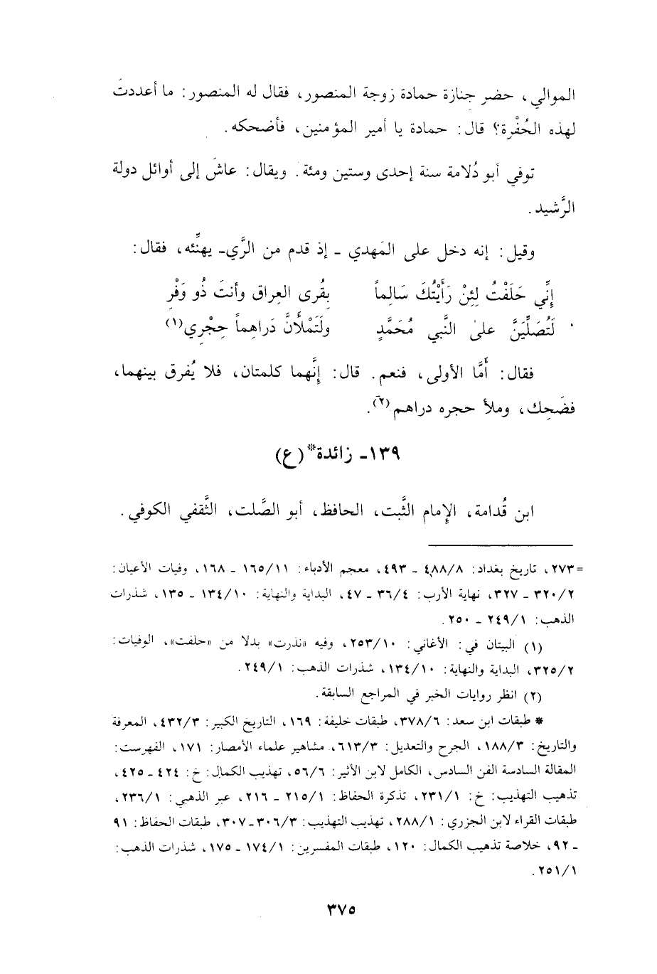 139 - زَائِدَةُ بنُ قُدَامَةَ أَبُو الصَّلْتِ الثَّقَفِيُّ * (ع)