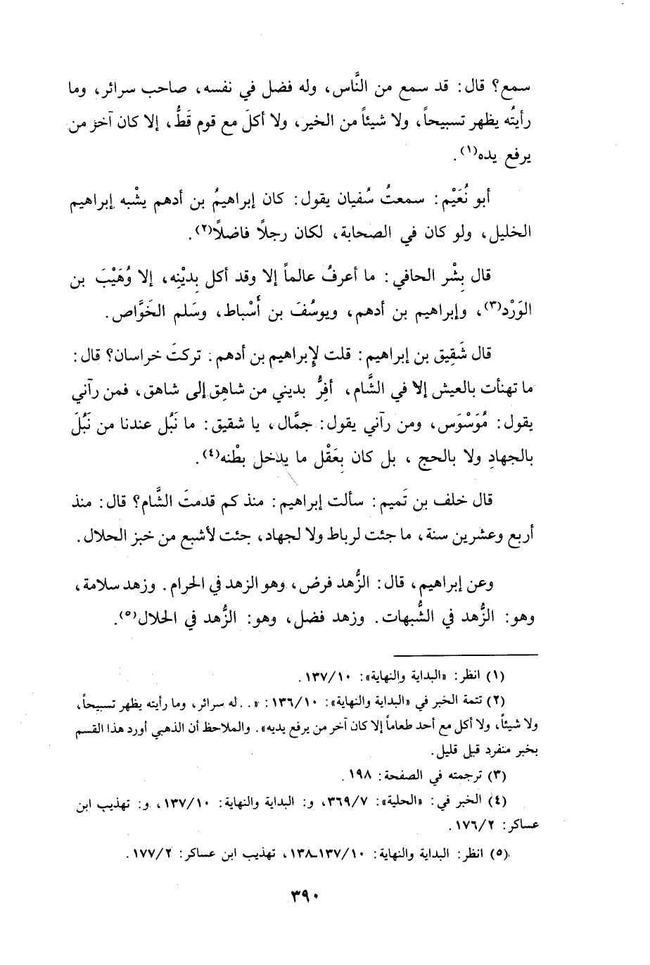 (2) تتمة الخبر في " البداية والنهاية ": 10 / 136: "..له سرائر، وما رأيته يظهر تسبيحا، ولا شيئا، ولا أكل مع أحد طعاما إلا كان آخر من يرفع يديه ".