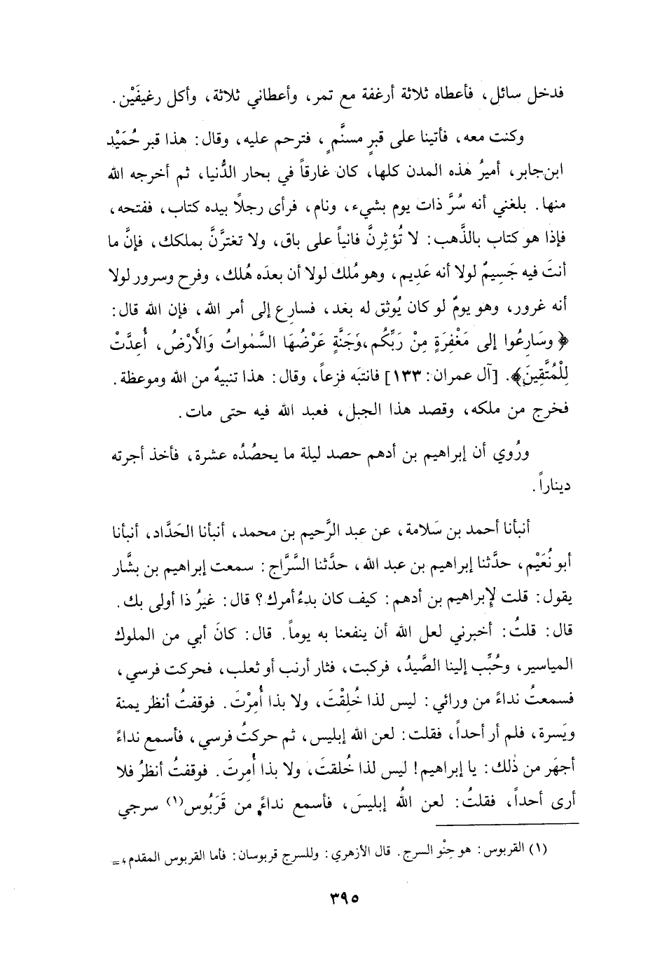 أَنْبَأَنَا أَحْمَدُ بنُ سَلاَمَةَ، عَنْ عَبْدِ الرَّحِيْمِ بنِ مُحَمَّدٍ، أَنْبَأَنَا الحَدَّادُ، أَنْبَأَنَا أَبُو نُعَيْمٍ، حَدَّثَنَا إِبْرَاهِيْمُ بنُ عَبْدِ اللهِ، حَدَّثَنَا السَّرَّاجُ:
