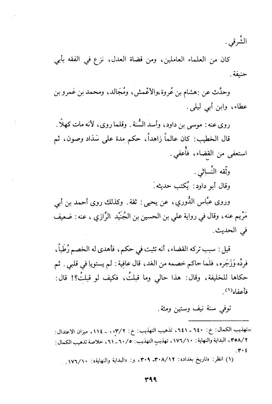 (1) انظر: " تاريخ بغداد ": 12 / 308 - 309، و: " البدية والنهاية ": 10 / 176.