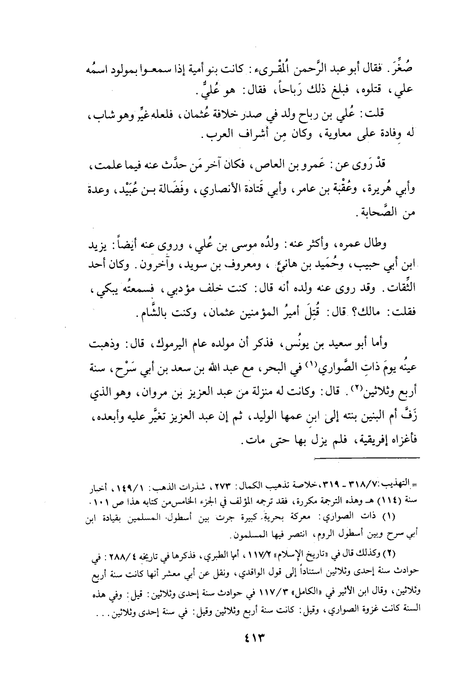 (2) وكذلك قال في " تاريخ الإسلام " 2 / 117، أما الطبري، فذكرها في تاريخه 4 / 288: في حوادث سنة إحدى وثلاثين استنادا إلى قول الواقدي، ونقل عن أبي معشر أنها كانت سنة أربع وثلاثين، وقال ابن الأثير في " الكامل " 3 / 117 في حوادث سنة إحدى وثلاثين: قيل: وفي هذه السنة كانت غزوة الصواري، وقيل: كانت سنة أربع وثلاثين وقيل: في سنة إحدى وثلاثين ...
