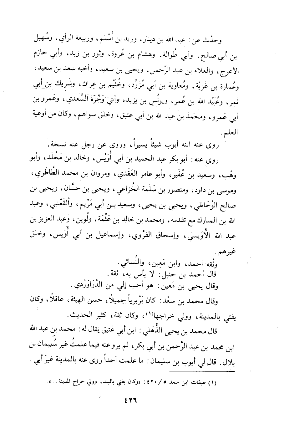 وَقَالَ مُحَمَّدُ بنُ سَعْدٍ: كَانَ بَرْبَرِيّاً، جَمِيْلاً، حَسَنَ الهَيْئَةِ، عَاقِلاً، وَكَانَ يُفْتِي بِالمَدِيْنَةِ، وَوَلِيَ خَرَاجَهَا (1) ، وَكَانَ ثِقَةً، كَثِيْرَ الحَدِيْثِ.