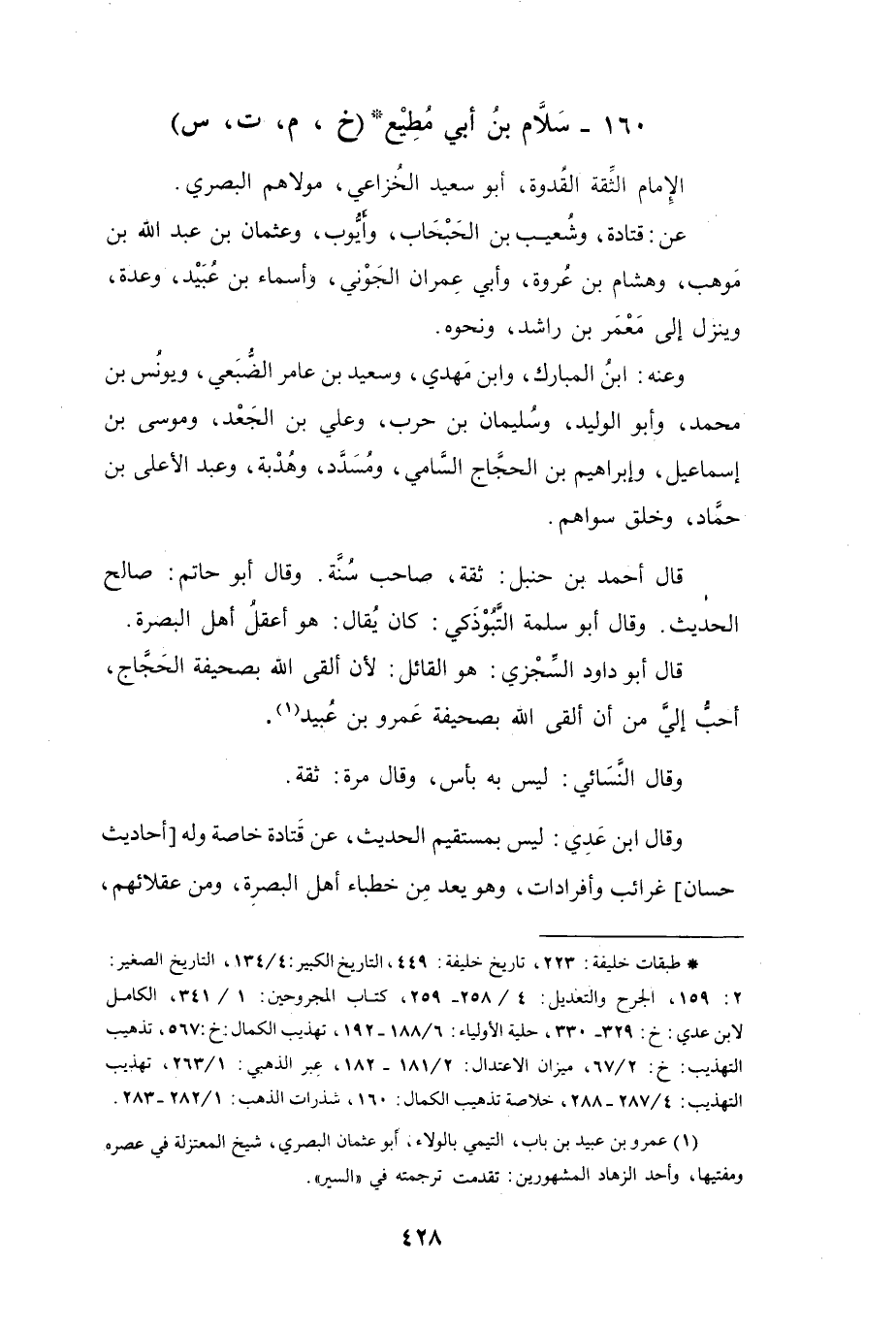 160 - سَلاَّمُ بنُ أَبِي مُطِيْعٍ الخُزَاعِيُّ مَوْلاَهُم * (خَ، م، ت، س)