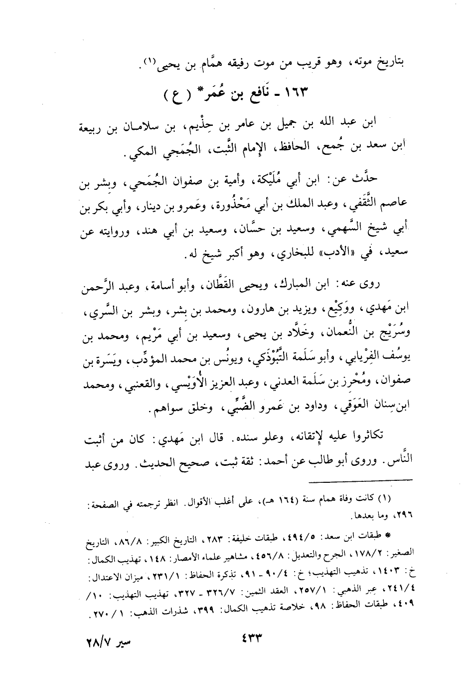 163 - نَافِعُ بنُ عُمَرَ بنِ عَبْدِ اللهِ بنِ جَمِيْلٍ الجُمَحِيُّ * (ع)