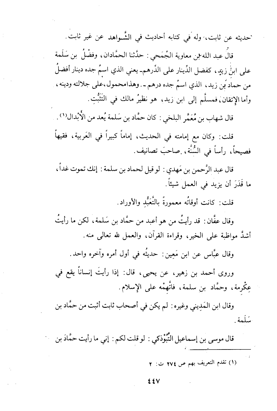 وَقَالَ ابْنُ المَدِيْنِيِّ، وَغَيْرُهُ: لَمْ يَكُنْ فِي أَصْحَابِ ثَابِتٍ أَثْبَتُ مِنْ حَمَّادِ بنِ سَلَمَةَ.