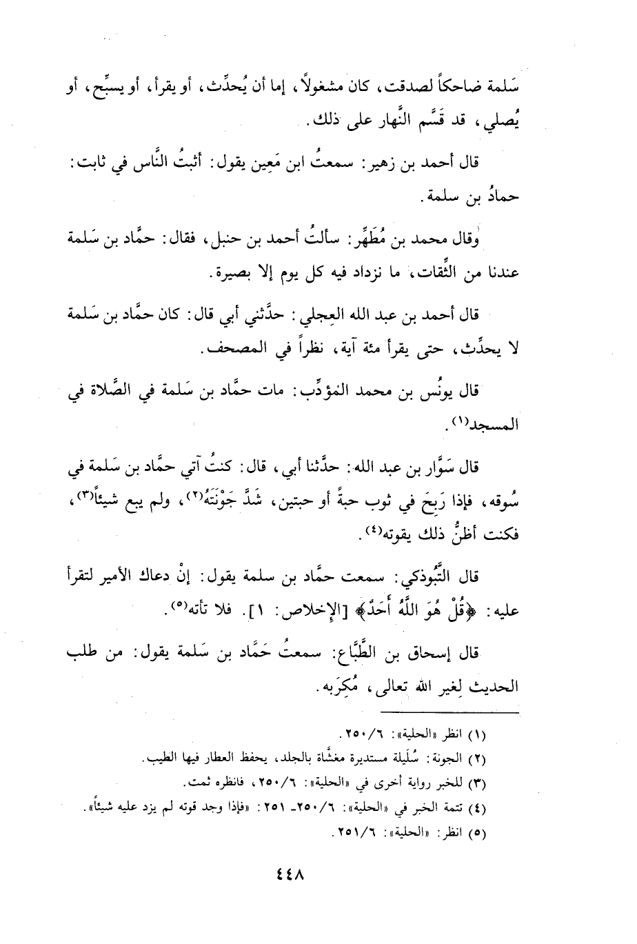 حَمَّادُ بنُ سَلَمَةَ عِنْدَنَا مِنَ الثِّقَاتِ، مَا نَزدَادُ فِيْهِ كُلَّ يَوْمٍ إِلاَّ بَصِيْرَةً.