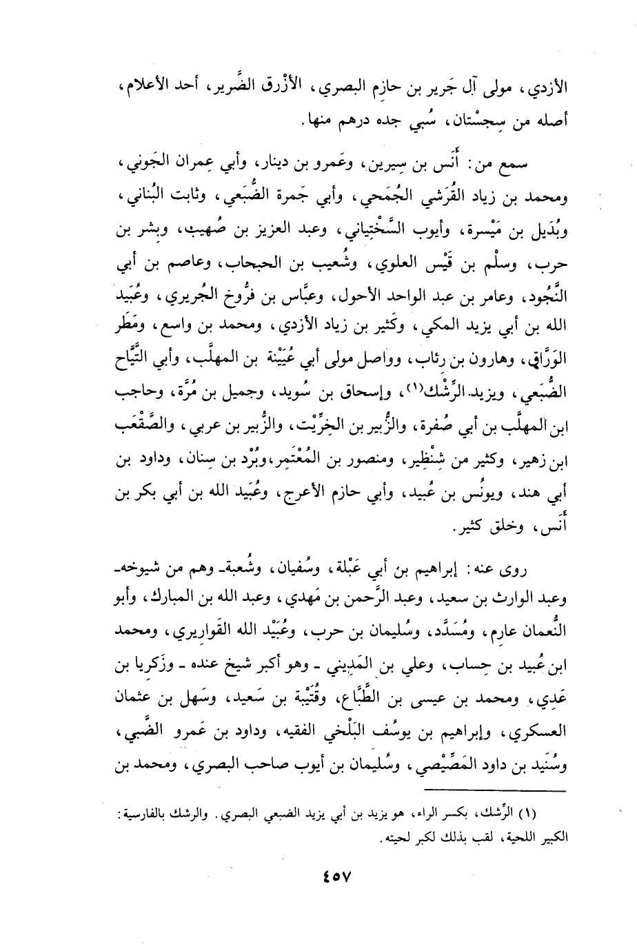 الأَزْدِيُّ، مَوْلَى آلِ جَرِيْرِ بنِ حَازِمٍ البَصْرِيِّ، الأَزْرَقُ، الضَّرِيْرُ، أَحَدُ الأَعْلاَمِ.