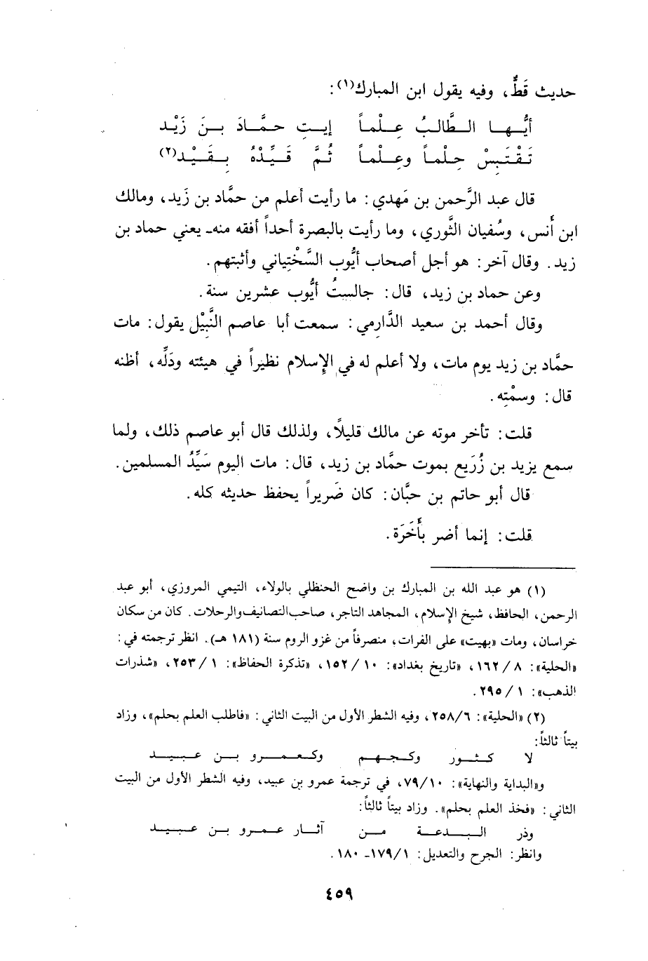 أَيُّهَا الطَّالِبُ عِلْماً ... إِيْتِ حَمَّادَ بنَ زَيْدِ