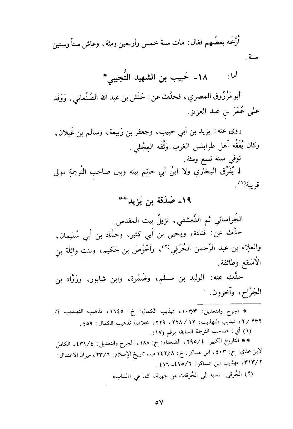19 - صَدَقَةُ بنُ يَزِيْدَ الخُرَاسَانِيُّ ثُمَّ الدِّمَشْقِيُّ **
