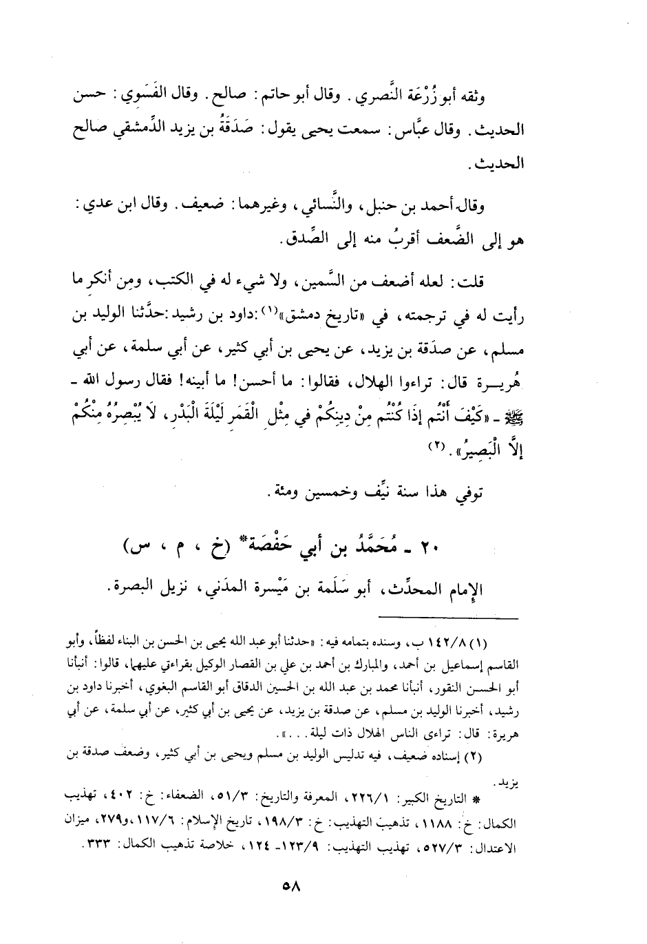 (*) التاريخ الكبير: 1 / 226، المعرفة والتاريخ: 3 / 51، الضعفاء: خ: 402، تهذيب الكمال: خ: 1188، تذهيب التهذيب: خ: 3 / 198، تاريخ الإسلام: 6 / 117، و279، ميزان الاعتدال: 3 / 527، تهذيب التهذيب: 9 / 123 - 124، خلاصة تذهيب الكمال: 333.
