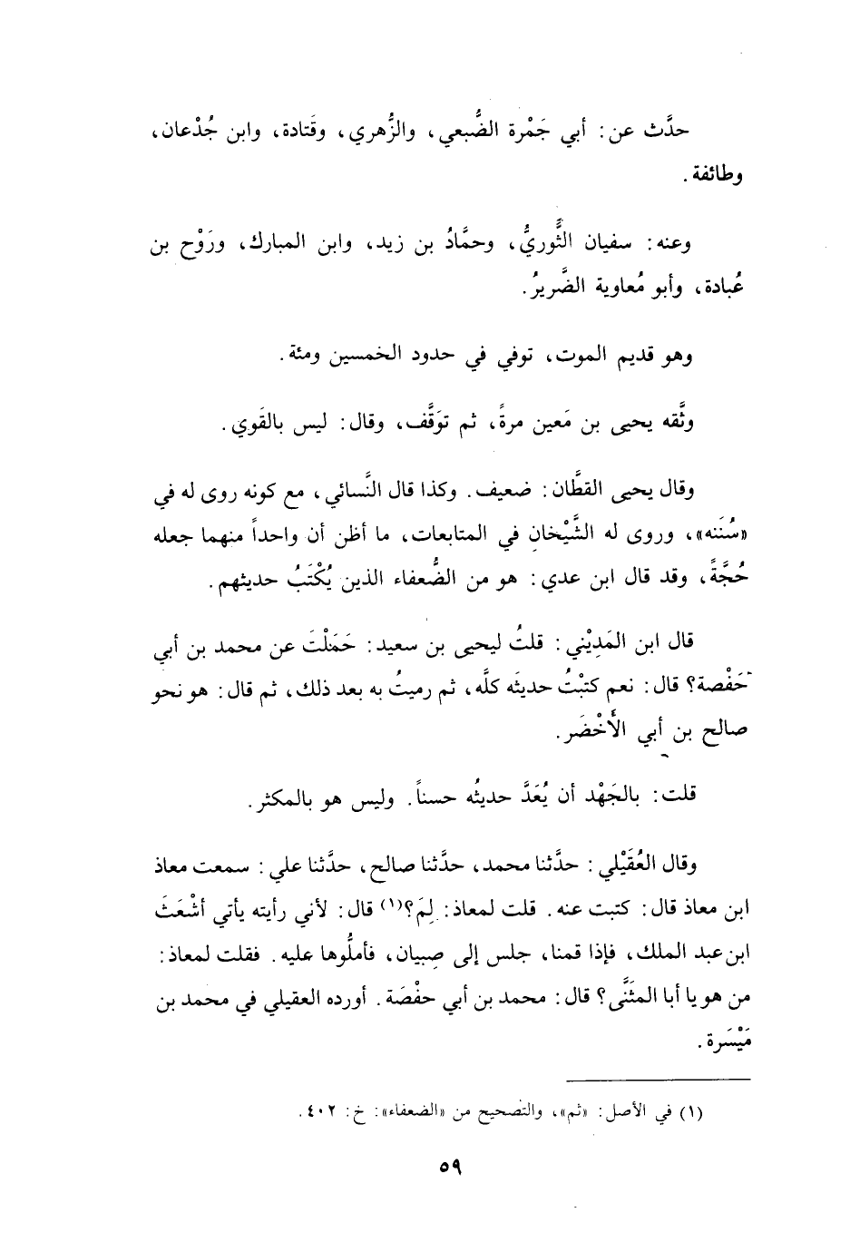 (1) في الأصل: " ثم "، والتصحيح من " الضعفاء ": خ: 402.