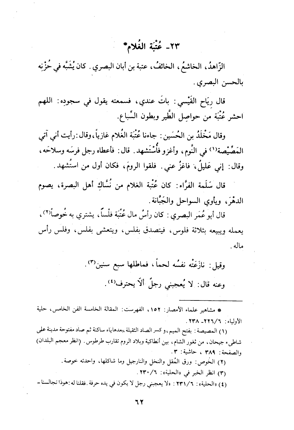 23 - عُتْبَةُ الغُلاَمُ بنُ أَبَانٍ البَصْرِيُّ *