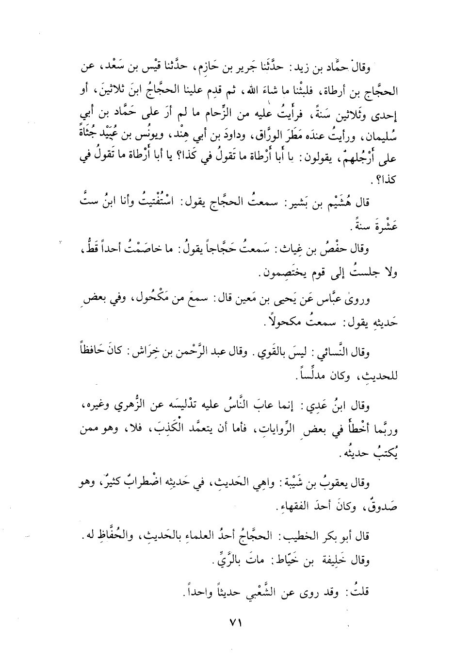 قَالَ أَبُو بَكْرٍ الخَطِيْبُ: الحَجَّاجُ: أَحَدُ العُلَمَاءِ بِالحَدِيْثِ، وَالحُفَّاظِ لَهُ.