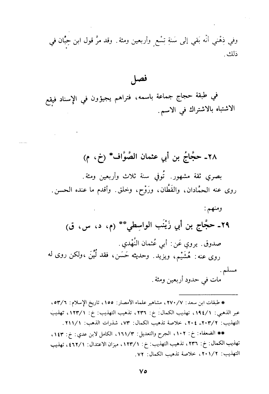 فَصْلٌ فِي طَبَقَةِ حَجَّاجٍ؛ جَمَاعَةٍ بِاسْمِهِ، فَتَرَاهُم يَجِيْئُوْنَ فِي الإِسْنَادِ، فَيَقَعُ الاشْتِبَاهُ بِالاشْتِرَاكِ فِي الاسْمِ: