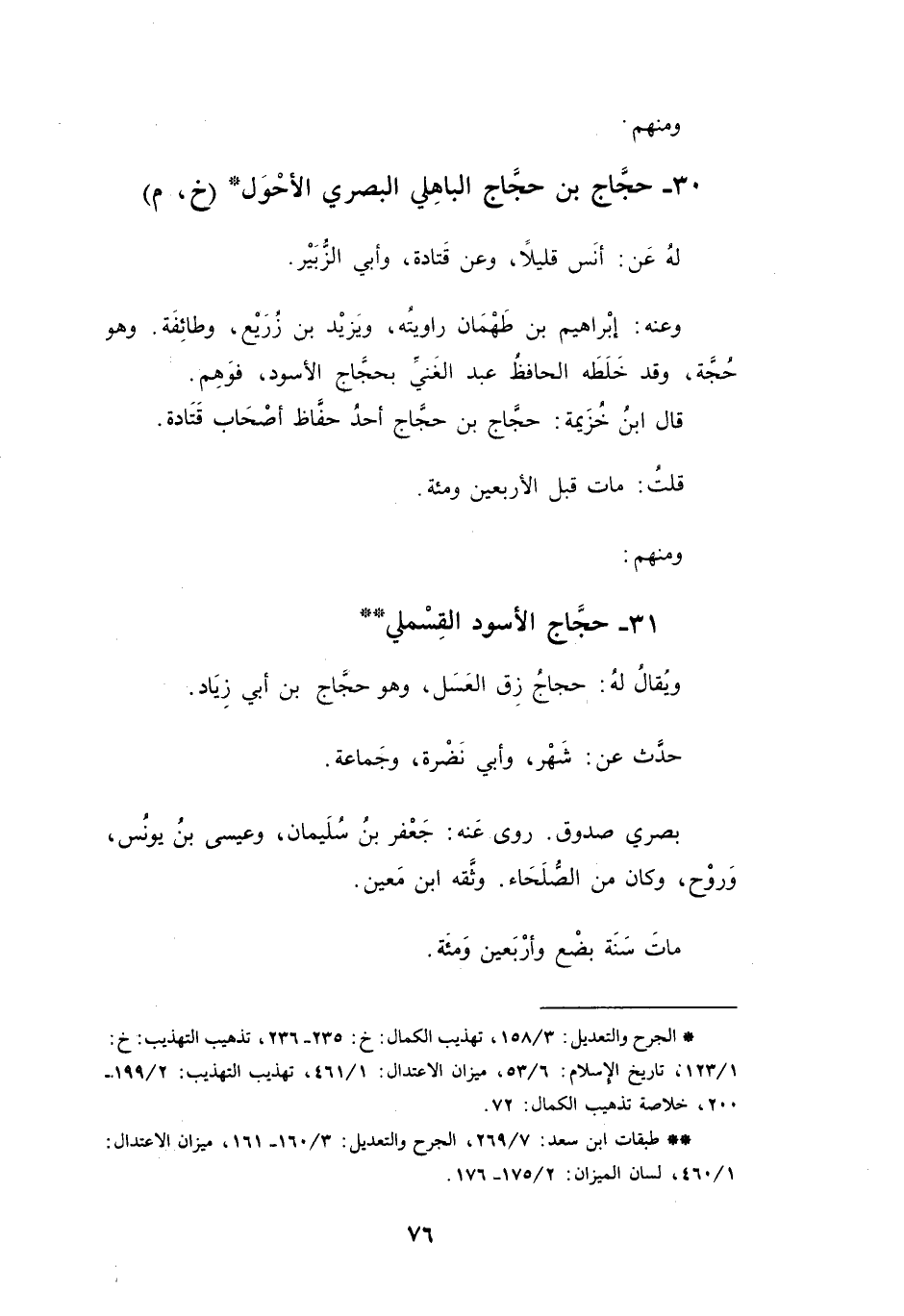 30 - حَجَّاجُ بنُ حَجَّاجٍ البَاهِلِيُّ البَصْرِيُّ الأَحْوَلُ * (خَ، م)