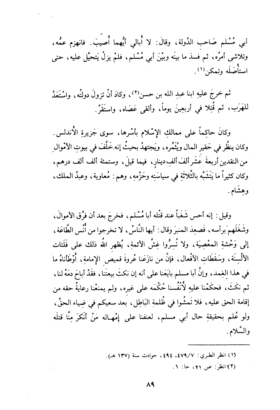 (1) انظر الطبري: 7 / 479 - 494، حوادث سنة (137 هـ) .