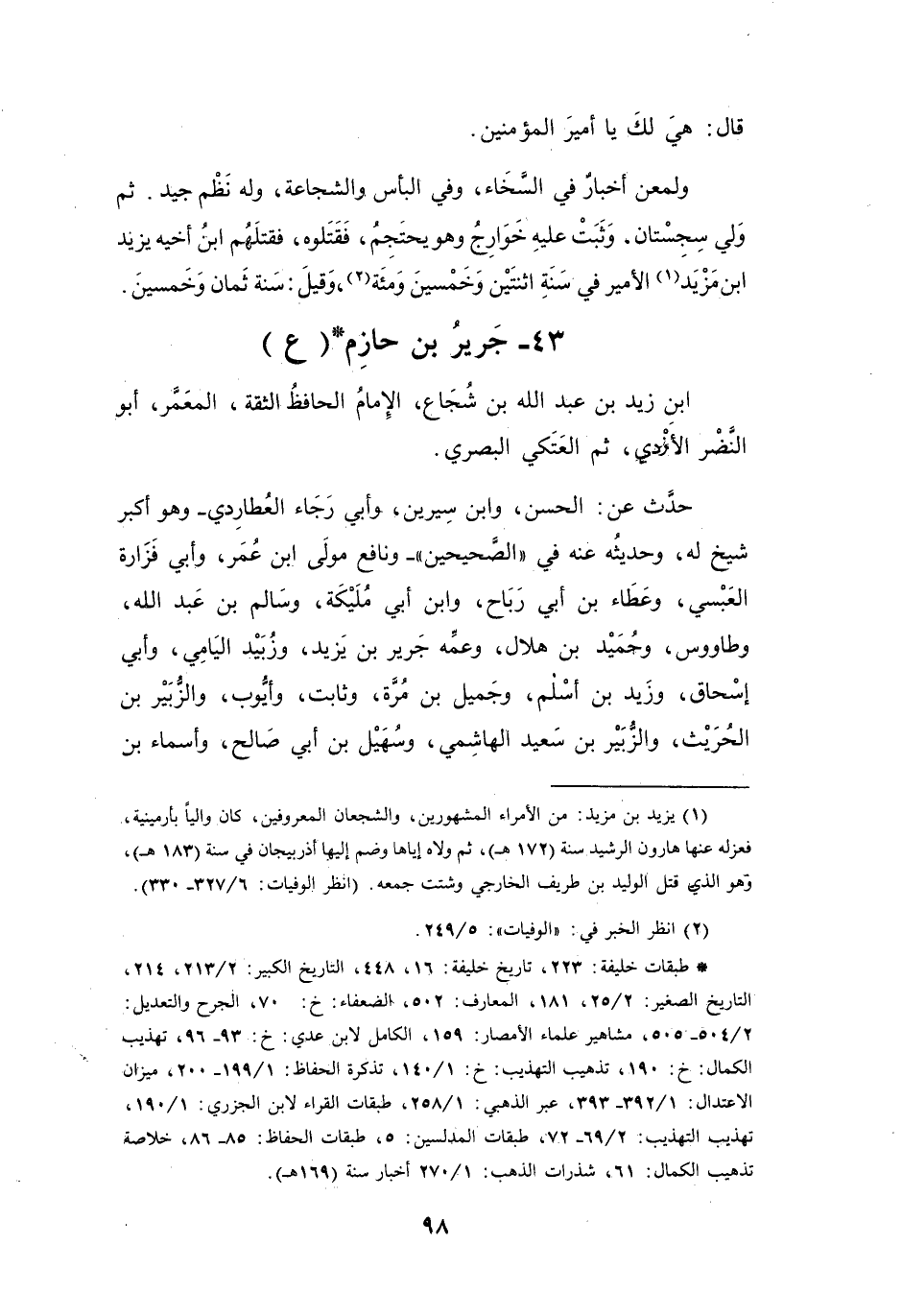43 - جَرِيْرُ بنُ حَازِمِ بنِ زَيْدِ بنِ عَبْدِ اللهِ بنِ شُجَاعٍ الأَزْدِيُّ * (ع)