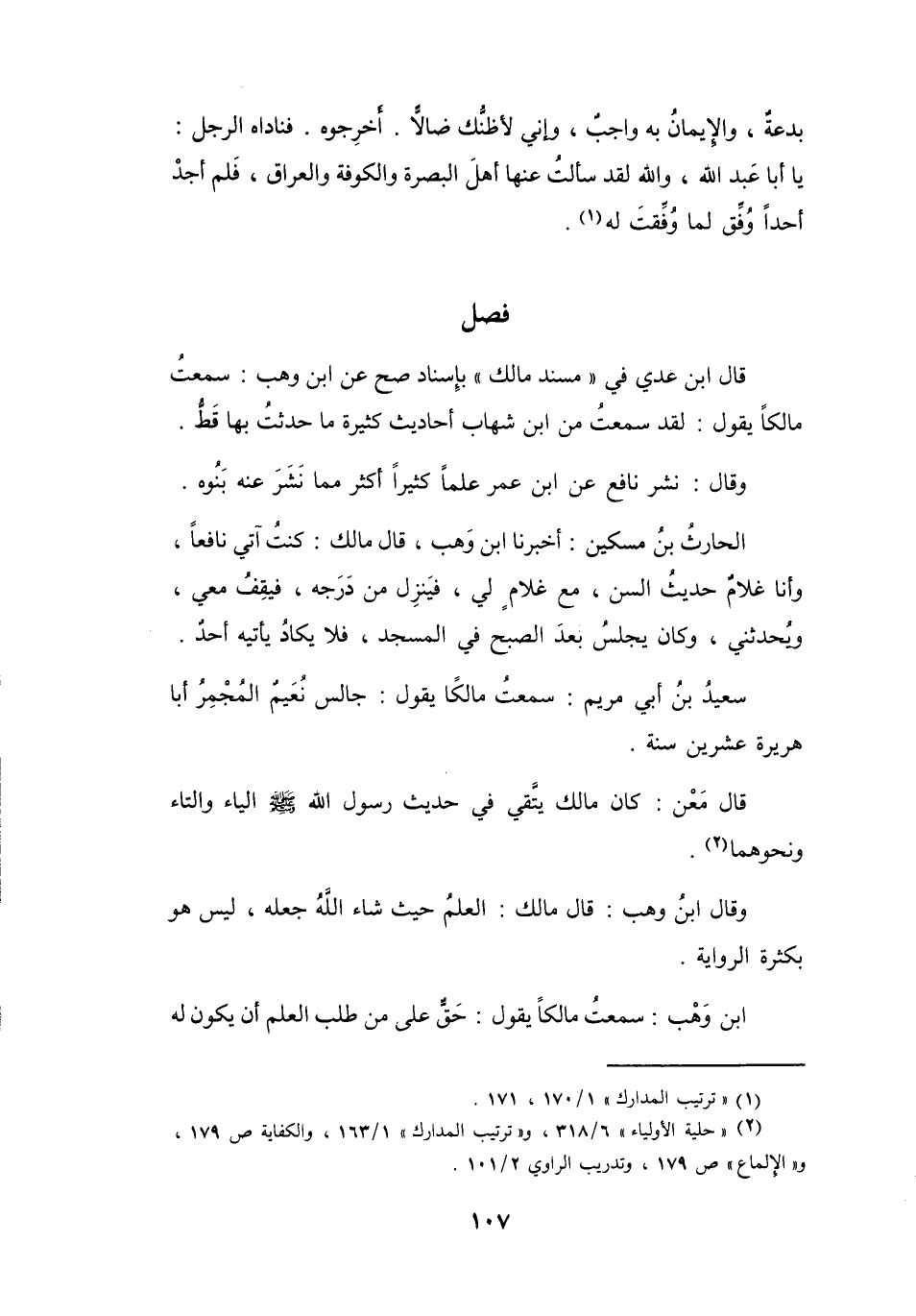 (2) " حلية الأولياء " 6 / 318، و" ترتيب المدارك " 1 / 163، والكفاية ص 179، و" الالماع " ص 179، وتدريب الراوي 2 / 101.