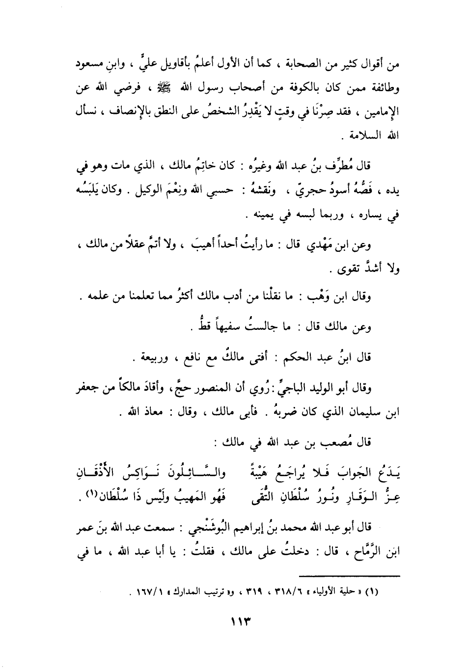 (1) " حلية الأولياء " 6 / 318، 319، و" ترتيب المدارك " 1 / 167.