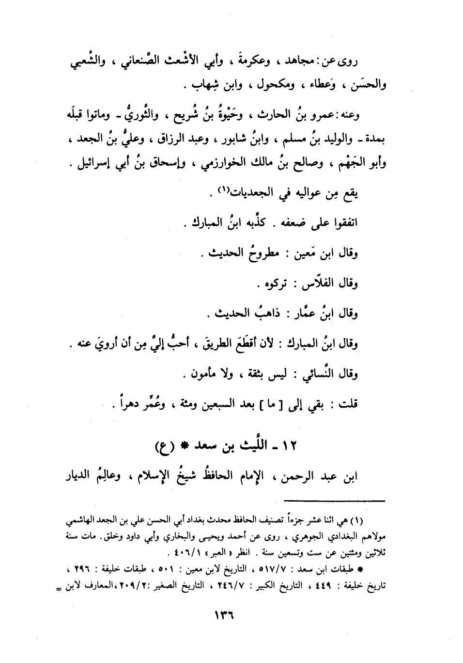 12 - اللَّيْثُ بنُ سَعْدِ بنِ عَبْدِ الرَّحْمَنِ الفَهْمِيُّ * (ع)