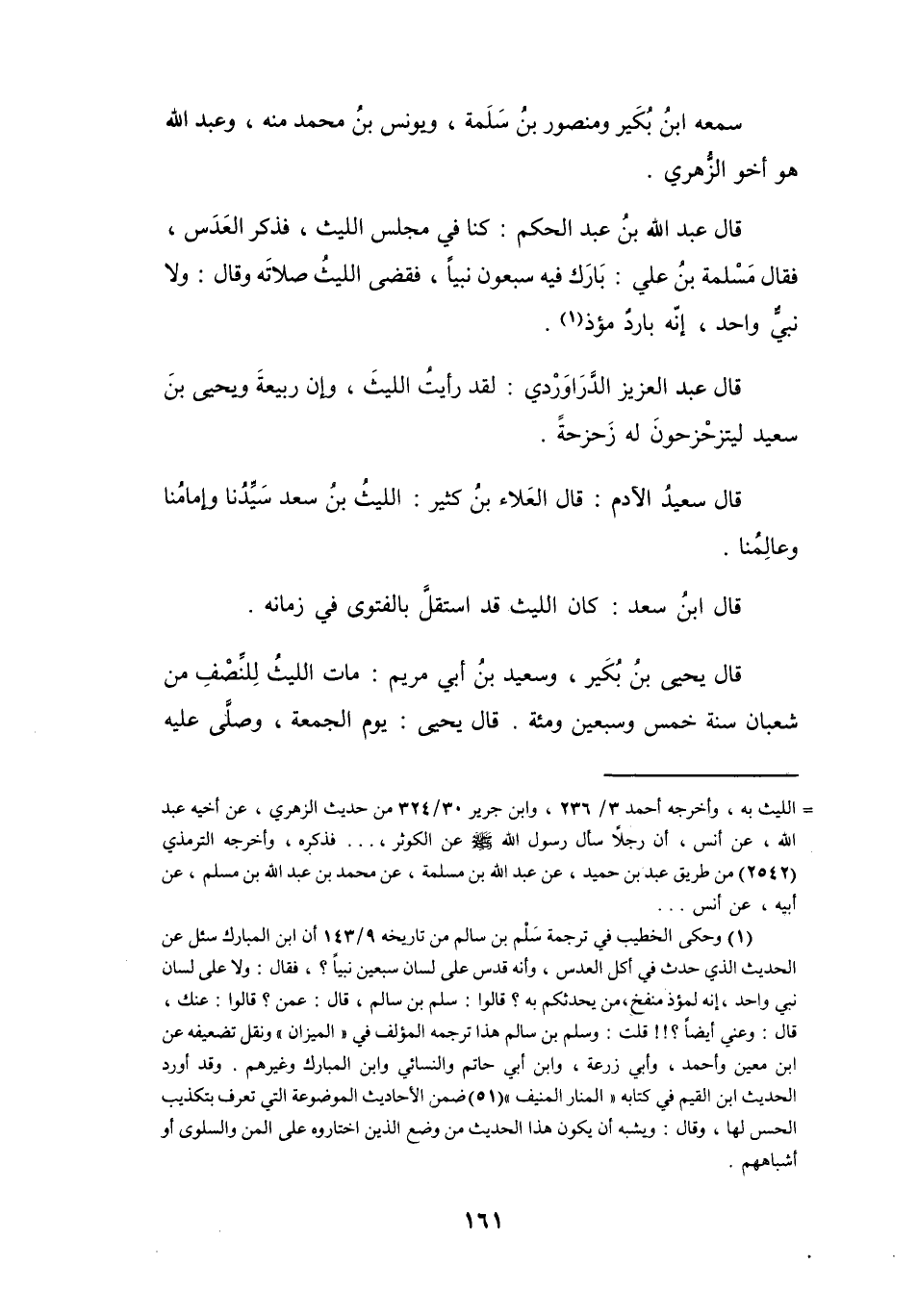 قَالَ سَعِيْدٌ الآدَمُ: قَالَ العَلاَءُ بنُ كَثِيْرٍ: اللَّيْثُ بنُ سَعْدٍ سَيِّدُنَا، وَإِمَامُنَا، وَعَالِمُنَا.