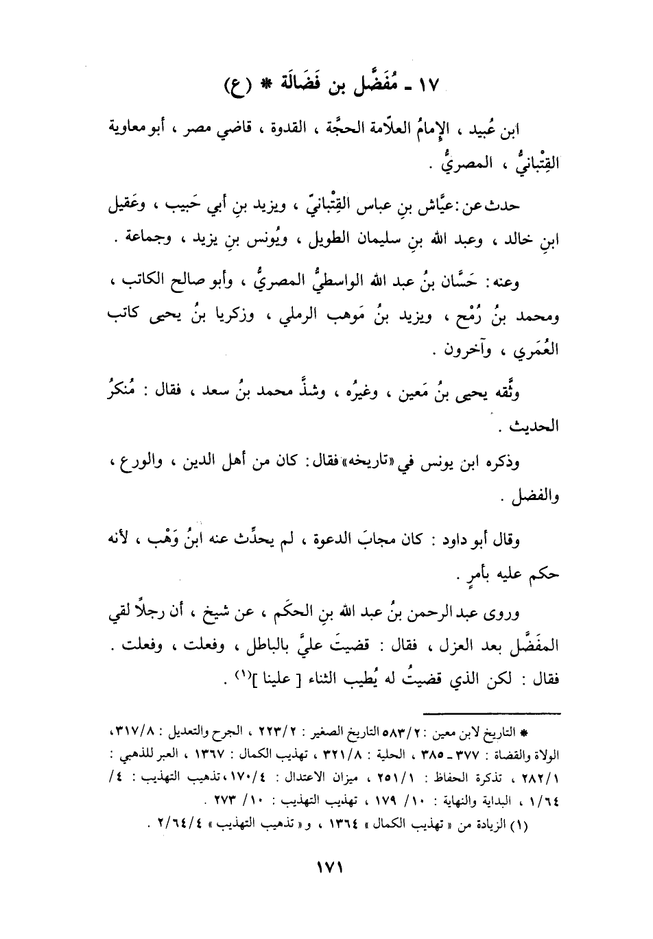 17 - مُفَضَّلُ بنُ فَضَالَةَ بنِ عُبَيْدٍ القِتْبَانِيُّ المِصْرِيُّ * (ع)