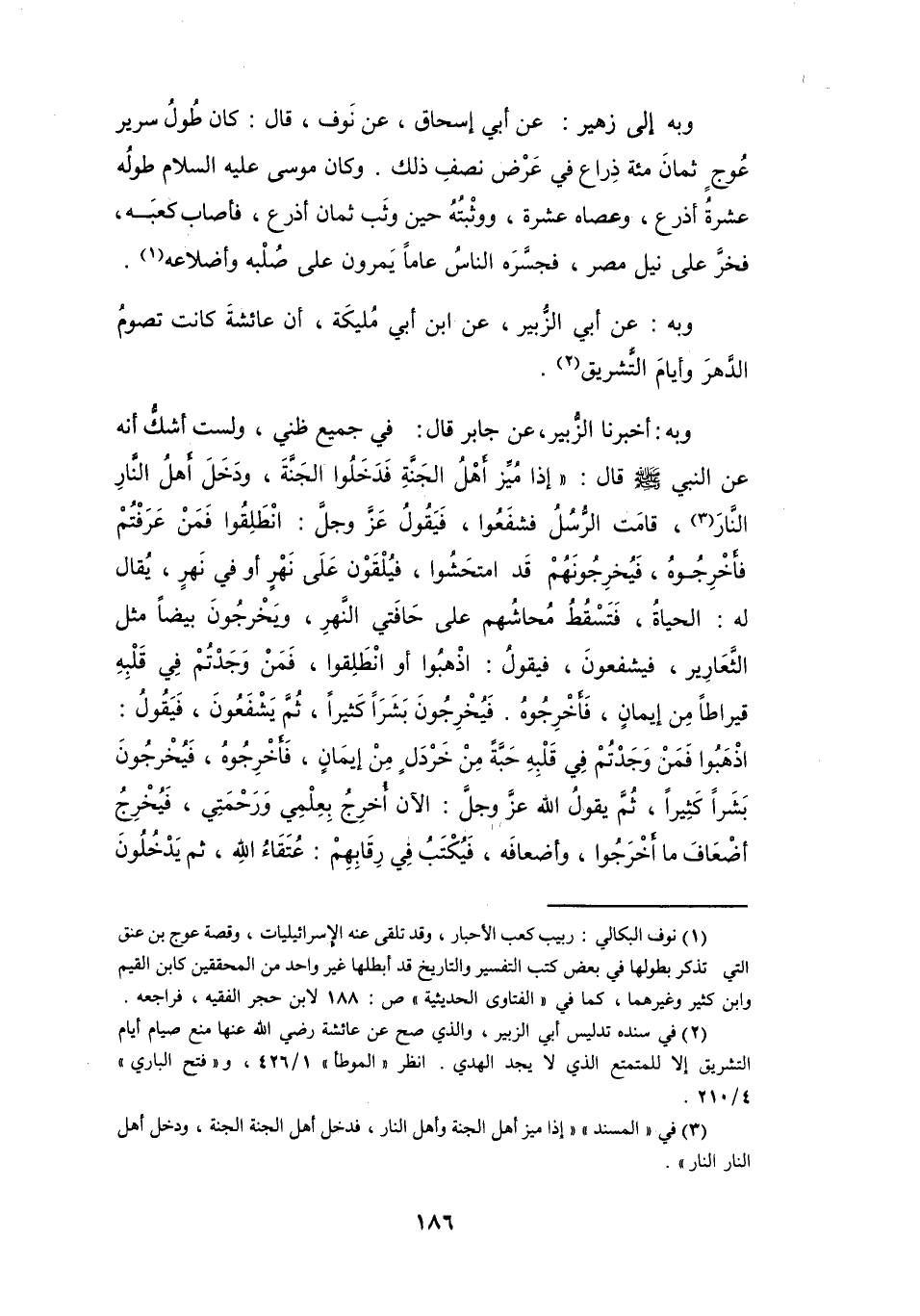 (1) نوف البكالي: ربيب كعب الاحبار، وقد تلقى عنه الاسرائيليات، وقصة عوج بن عنق التي تذكر بطولها في بعض كتب التفسير والتاريخ قد أبطلها غير واحد من المحققين كابن القيم وابن كثير وغيرهما، كما في " الفتاوى الحديثية " ص: 188 لابن حجر الفقيه، فراجعه.