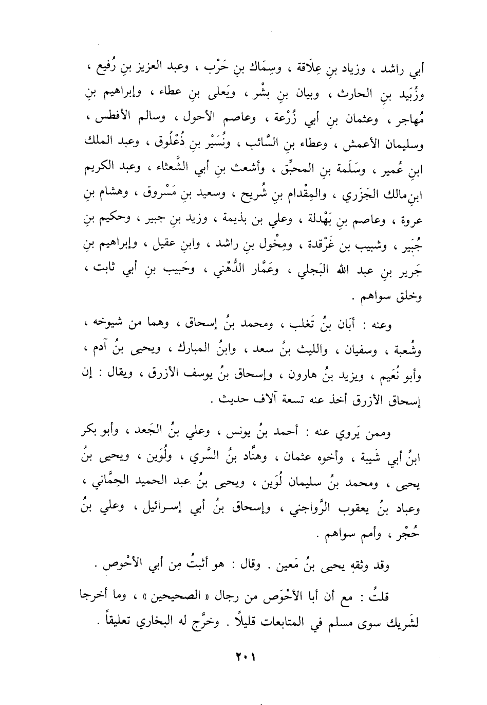 قُلْتُ: مَعَ أَنَّ أَبَا الأَحْوَصِ مِنْ رِجَالِ (الصَّحِيْحَيْنِ) ، وَمَا أَخْرَجَا لِشَرِيْكٍ سِوَى مُسْلِمٌ فِي المُتَابَعَاتِ قَلِيْلاً.