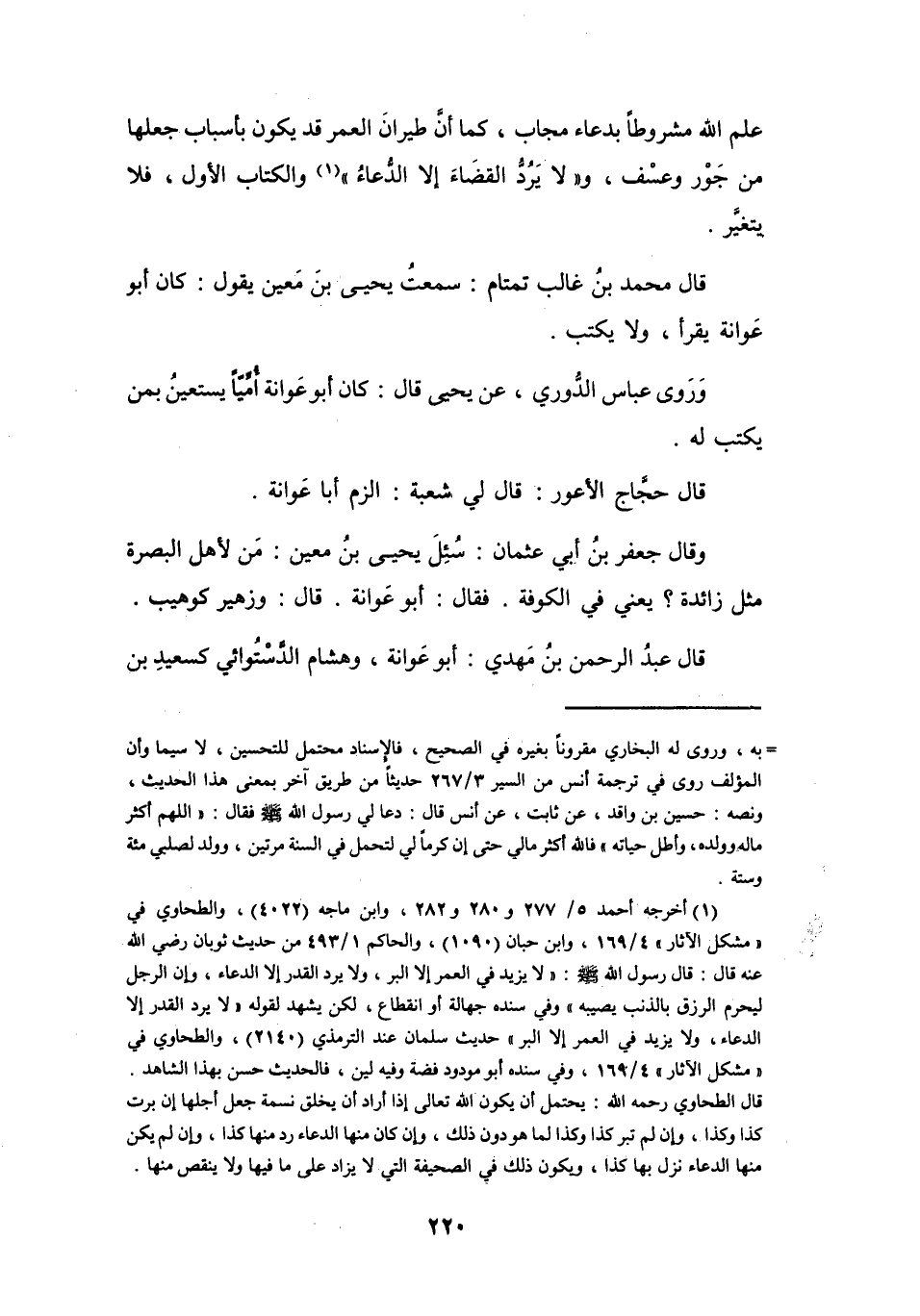 (1) أخرجه أحمد 5 / 277، 280 و282، وابن ماجه (4022) ، والطحاوي في " مشكل الآثار " 4 / 169، وابن حبان (1090) ، والحاكم 1 / 493، من حديث ثوبان رضي الله عنه قال: قال رسول الله صلى الله عليه وسلم: " لا يزيد في العمر إلا البر، ولا يرد القدر إلا الدعاء، وإن الرجل ليحرم الرزق بالذنب يصيبه " وفي سنده جهالة أو انقطاع، لكن يشهد لقوله " لا يرد القدر إلا الدعاء، ولا يزيد في العمر إلا البر " حديث سلمان عند الترمذي (2140) ، والطحاوي في " مشكل الآثار " 4 / 169، وفي سنده أبو مودود فضة وفيه لين، فالحديث حسن بهذا الشاهد.