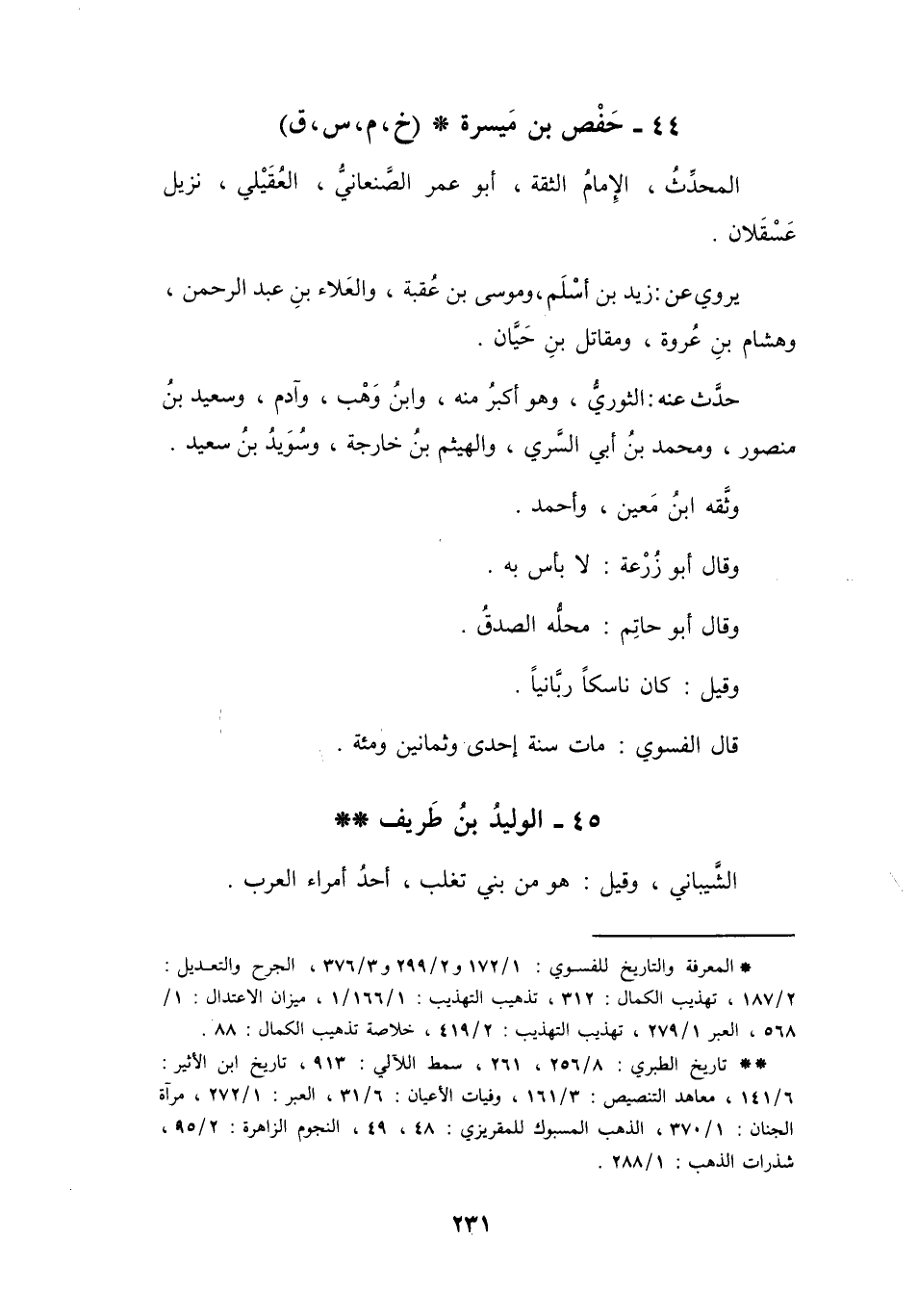 45 - الوَلِيْدُ بنُ طَرِيْفٍ الشَّيْبَانِيُّ *