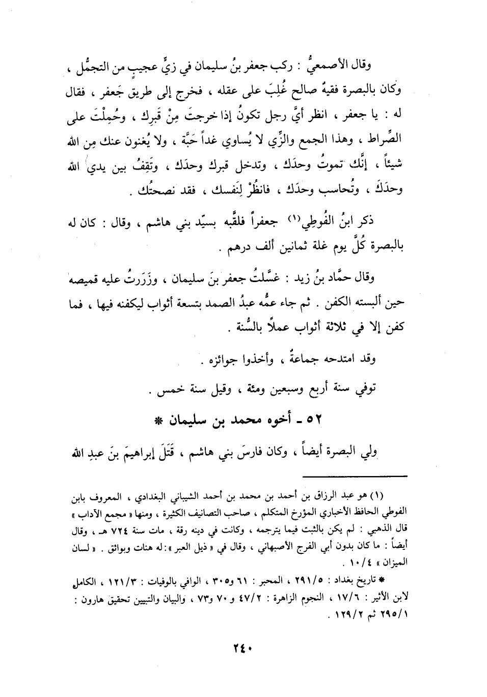 (*) تاريخ بغداد: 5 / 291، المحبر: 61 و305، الوافي بالوفيات: 3 / 121، الكامل لابن الأثير: 6 / 17، النجوم الزاهرة: 2 / 47 و70 و73، والبيان والتبيين تحقيق هارون: 1 / 295 ثم 2 / 129.