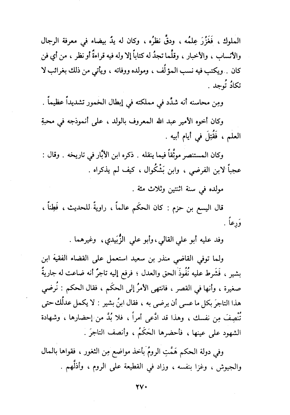 قَالَ اليَسَعُ بنُ حَزْمٍ: كَانَ الحَكَمُ عَالِماً، رَاوِيَةً لِلْحَدِيْثِ، فَطِناً، وَرِعاً.