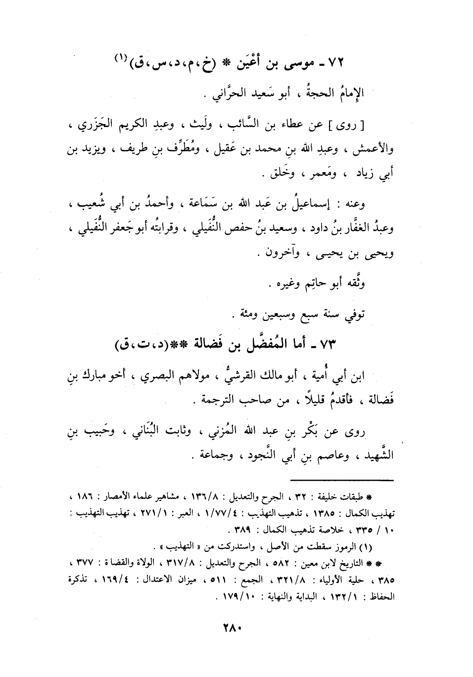 72 - مُوْسَى بنُ أَعْيَنَ الحَرَّانِيُّ * (خَ، م، د، س، ق (1))