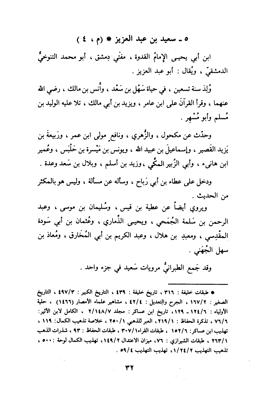 5 - سَعِيْدُ بنُ عَبْدِ العَزِيْزِ بنِ أَبِي يَحْيَى التَّنُوْخِيُّ * (م، 4)