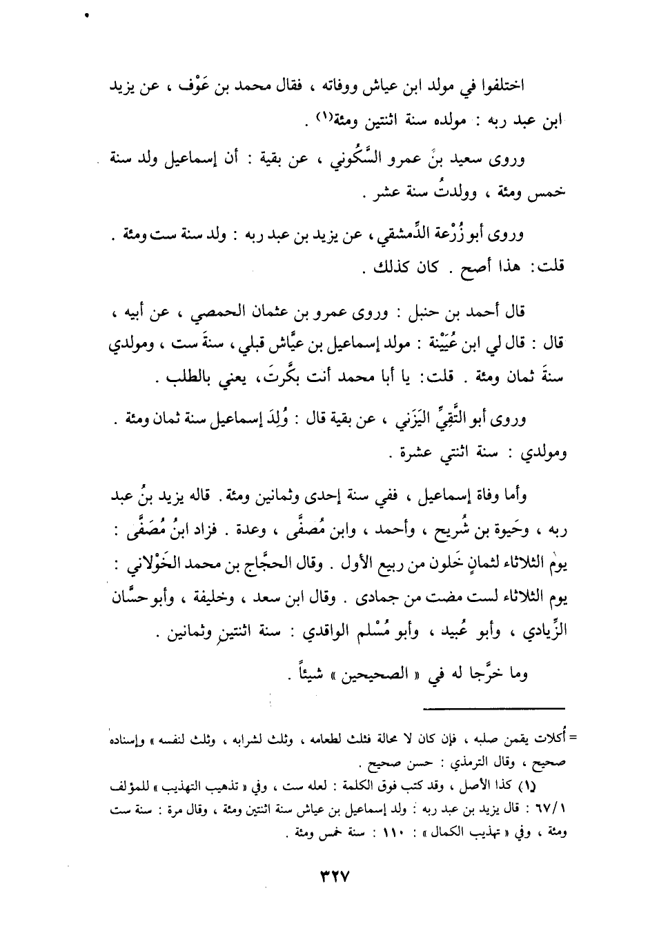 (1) كذا الأصل، وقد كتب فوق الكلمة: لعله ست، وفي " تذهيب التهذيب " للمؤلف 1 / 67: قال يزيد بن عبد ربه: ولد إسماعيل بن عياش سنة اثنتين ومئة، وقال مرة: سنة ست ومئة، وفي " تهذيب الكمال ": 110: سنة خمس ومئة.