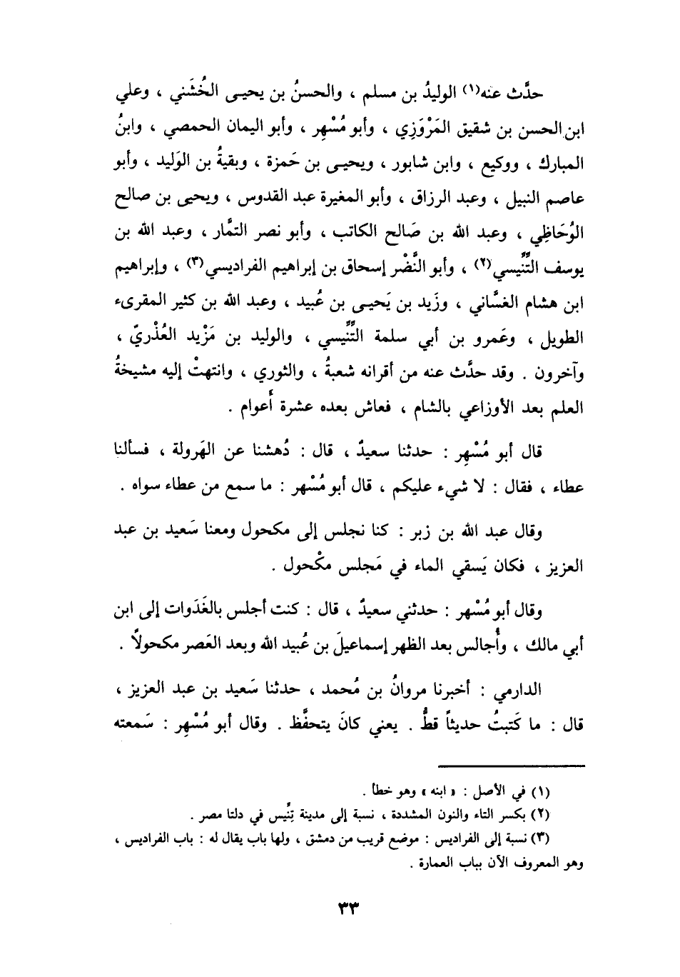 وَقَالَ أَبُو مُسْهِرٍ: سَمِعْتهُ