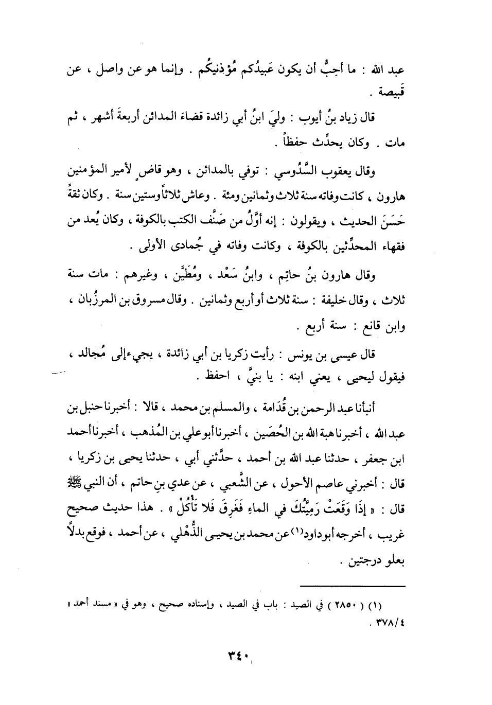 (1) (2850) في الصيد: باب في الصيد، وإسناده صحيح، وهو في " مسند أحمد " 4 / 378.