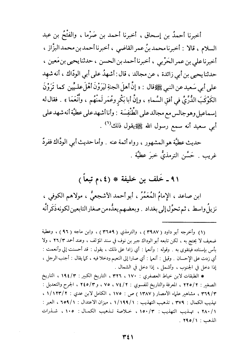 (1) وأخرجه أبو داود (3987) ، والترمذي (3659) ، وابن ماجه (96) ، وعطية ضعيف لا يحتج به، لكن تابعه أبو الوداك جبر بن نوف في سند المؤلف، وعند أحمد 3 / 26، ولا بأس بإسناده فيتقوى به.