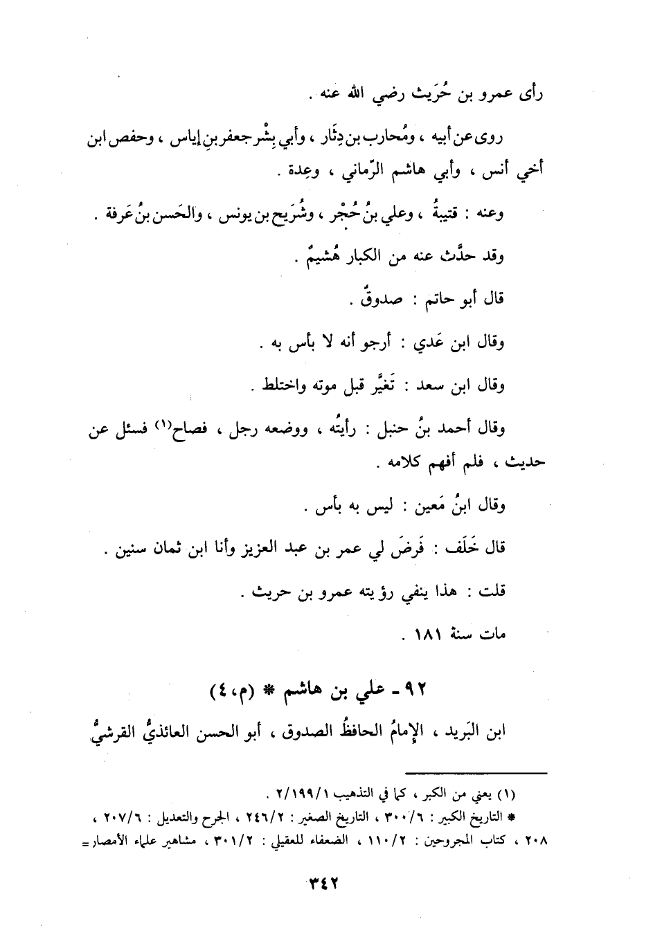 92 - عَلِيُّ بنُ هَاشِمِ بنِ البَرِيْدِ العَائِذِيُّ * (م، 4)