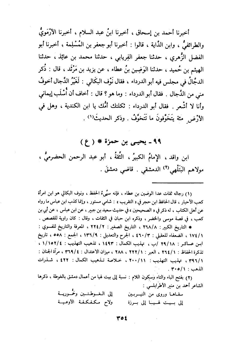 99 - يَحْيَى بنُ حَمْزَةَ بنِ وَاقِدٍ الحَضْرَمِيُّ مَوْلاَهُم * (ع)