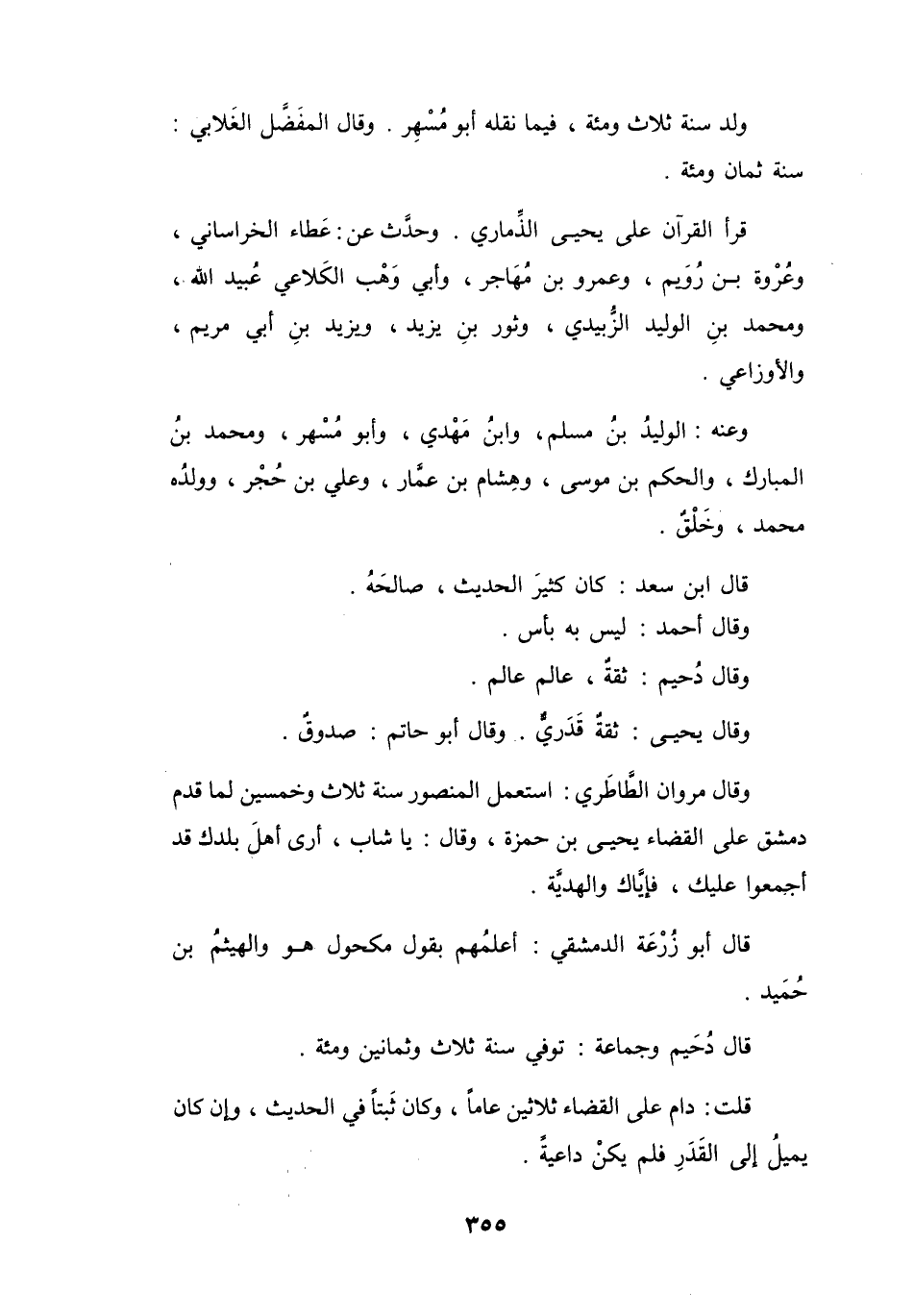 وَقَالَ دُحَيْمٌ: ثِقَةٌ، عَالِمٌ عَالِمٌ.