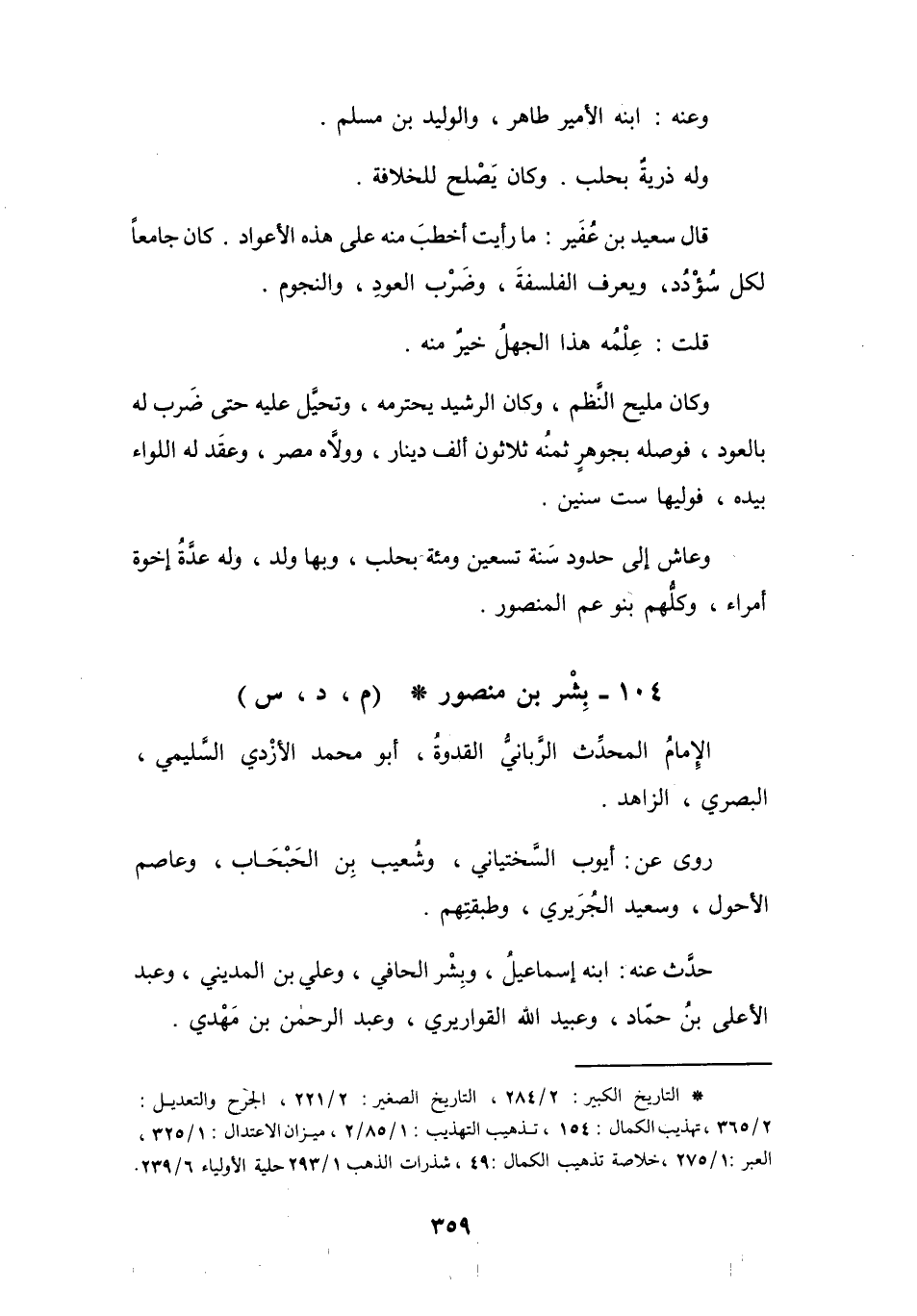 104 - بِشْرُ بنُ مَنْصُوْرٍ أَبُو مُحَمَّدٍ الأَزْدِيُّ * (م، د، س)