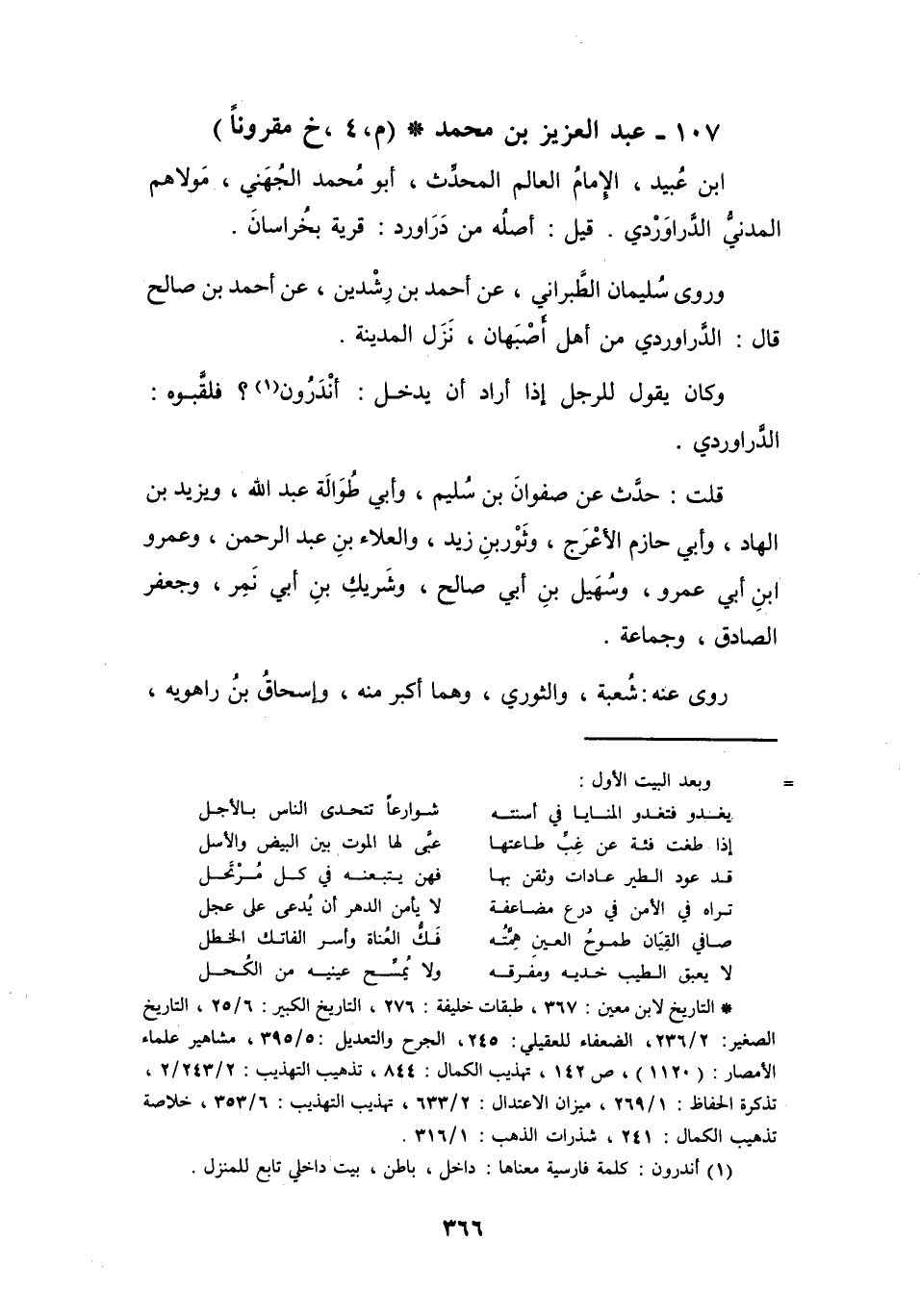 وَكَانَ يَقُوْلُ لِلرَّجُلِ إِذَا أَرَادَ أَنْ يَدْخُلَ: أَنْدَرُوْنَ (1) ؟ فَلَقَّبُوْهُ الدَّرَاوَرْدِيَّ.