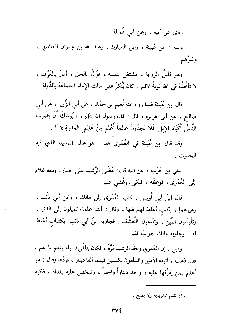 وَقَدْ قَالَ ابْنُ عُيَيْنَةَ فِي العُمَرِيِّ هَذَا: هُوَ عَالِمُ المَدِيْنَةِ الَّذِي فِيْهِ الحَدِيْثُ.